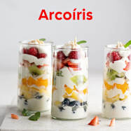 Vasitos arcoíris de fruta y crema de yogur