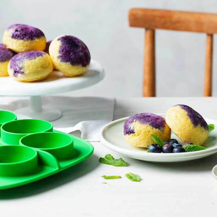 Von fluffigen Blaubeer-Muffins und geschmolzenem Schokoladenkuchen bis hin zu Eiweiß-Ei-Muffins und pochierten Eiern - mit der Thermomix® Multi-Silikonform ist das Portionieren, Ausformen und Aufbewahren superleicht. Backen, dämpfen, kühlen oder einfrieren? Alles kein Problem. Und nach der Nutzung: einfach in die Spülmaschine.