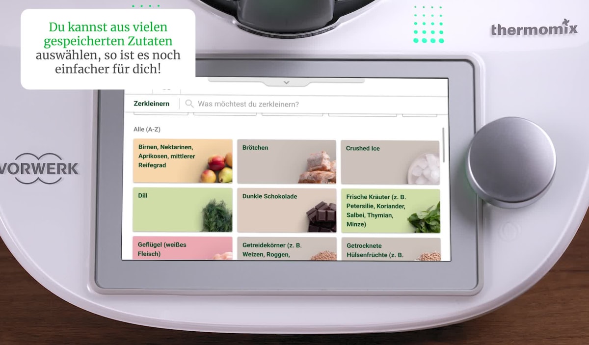 Beim Zerkleinern einer Zwiebel kam Mus heraus? Eigentlich sollte es Schokopulver werden, doch das Ergebnis war zerbröckelte Schokolade? Mit dem TM6 Modus "Zerkleinern" ist das alles kein Problem mehr! Hier findest du voreingestellte Kombinationen aus Zeit und Drehzahlstufe für bestimmte Zutaten, wie du sie aus den Tabellen unseres TM6 Grundkochbuchs "Einfach. Selbst. Gemacht." kennst. Nie wieder ungewisse Ergebnisse beim Zerkleinern!