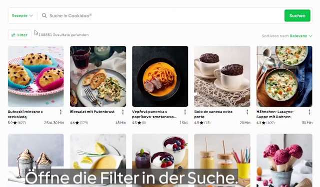 Egal, ob du nur auf der Suche nach Inspiration oder einem konkreten Rezept bist, die Cookidoo® Suche hilft dir dabei, das Passende zu finden. Rezept-Kategorie, Schwierigkeitsgrad, Zutat oder Sprache - dank vielseitiger Filter-Optionen kannst du dich auf die Suche nach Rezepten begeben, die genau zu dir passen.