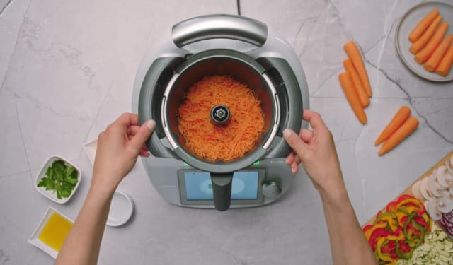 Mit dem Thermomix® Gemüse Styler setzt du neue Maßstäbe beim Anrichten und kreierst tolle Looks mit nur einer Scheibe für den TM5 und TM6. Jetzt kannst du viele verschiedene Zutaten schneiden und reiben - ganz easy und superschnell wird aus Obst, Gemüse & Co. ein echter Augenschmaus.