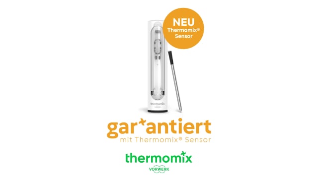 Backen, Brutzeln, Schmoren – der Thermomix® Sensor hat deine selbst gemachten Köstlichkeiten immer im Blick und sagt dir Bescheid, wenn sie auf dem Punkt sind. Erweitere die Thermomix® Gelinggarantie & Guided-Cooking auf Ofen, Pfanne und Grill. Der Thermomix® Sensor eignet sich neben den klassischen Anwendungsbereichen für Küchenthermometer wie Fleisch, Geflügel oder Fisch auch zum Backen von Kuchen oder Broten. Und das Beste: Mit der Cooking Center App auf deinem Smartphone kontrollierst du ganz bequem den Fortschritt deines Gerichts.