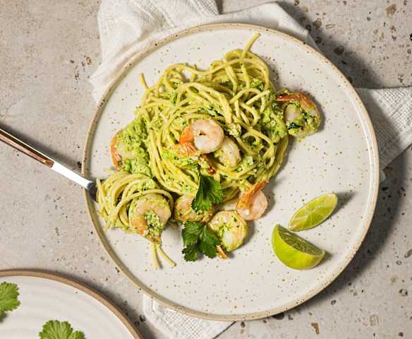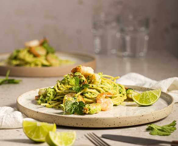 Makaron z krewetkami w pomarańczowym sosie