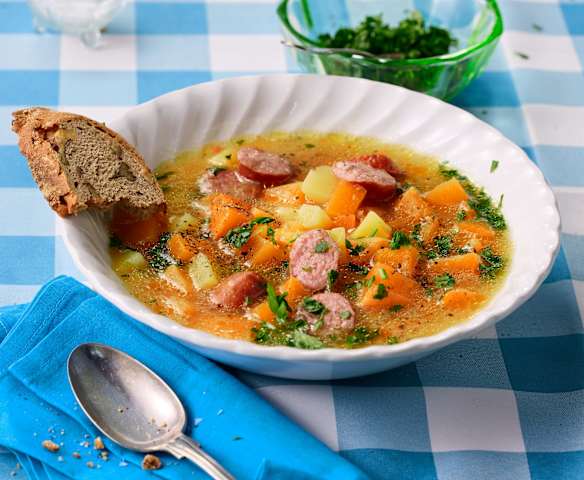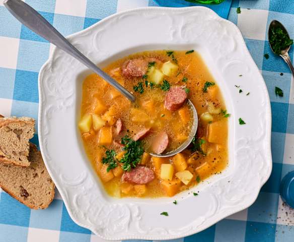 Steckrüben-Kartoffel-Eintopf mit Mettwurst