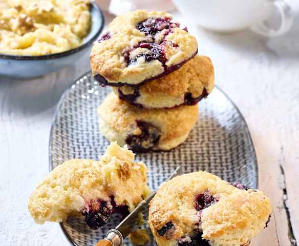Blaubeer-Scones mit Honig-Walnuss-Butter