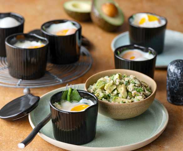 Kokilki jajeczne z salsą z awokado i wędzonego łososia