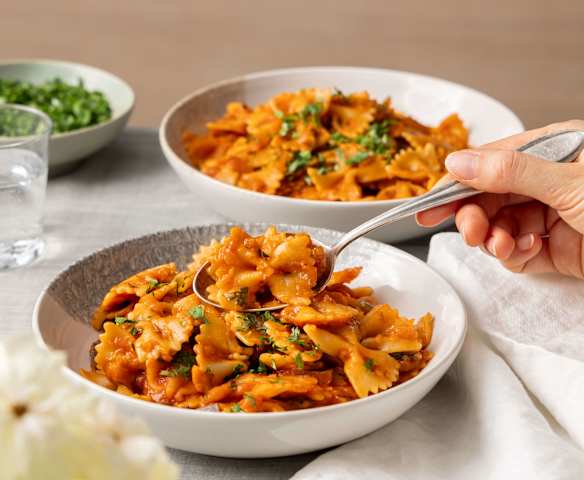 One Pot Penne mit Linsenbolognese
