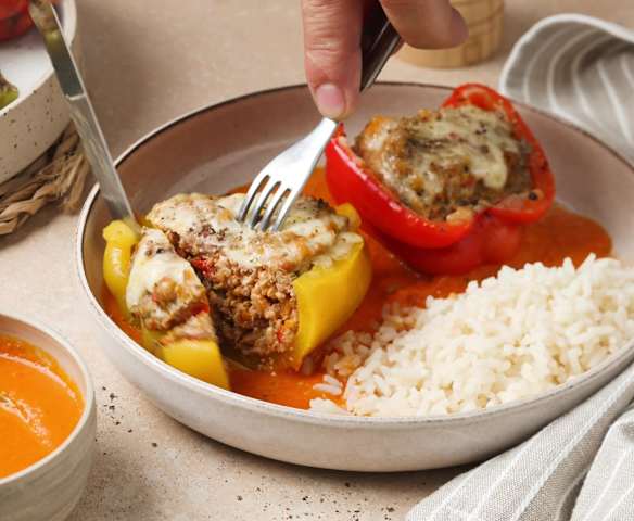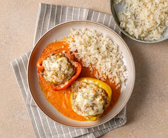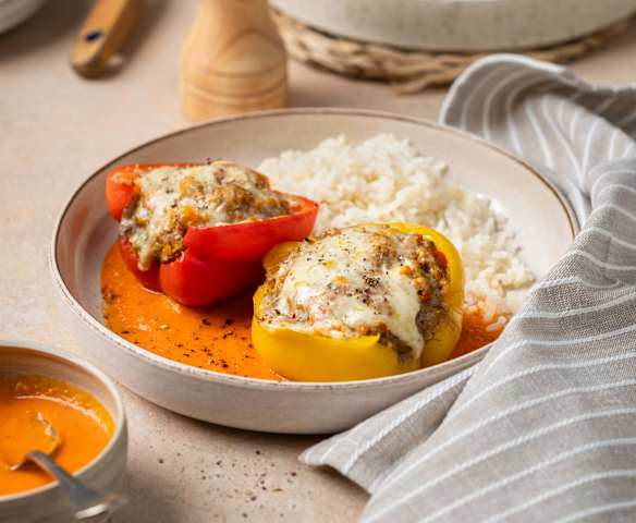 Gefüllte Paprikaschoten mit Reis und Tomatensauce