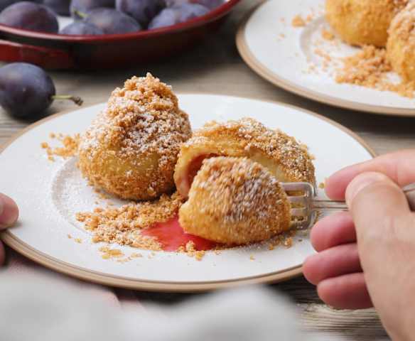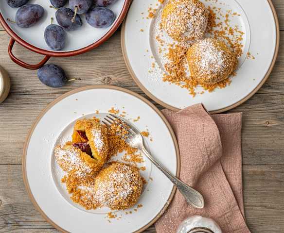 Zwetschkenknödel mit Butterbröseln
