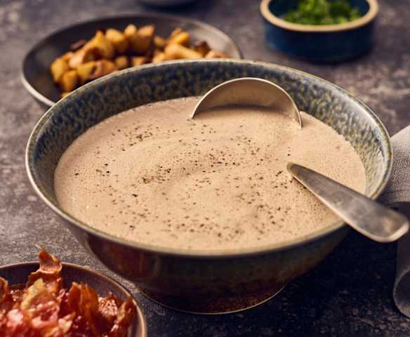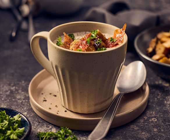 Pilz-Cappuccino mit Serrano-Chips