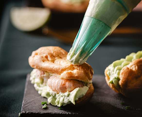 Mini-éclairs aux langoustines et chantilly wasabi